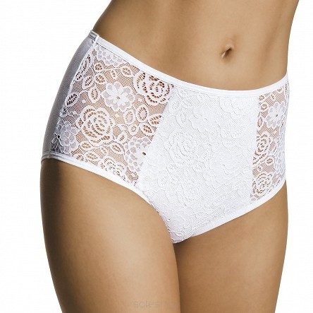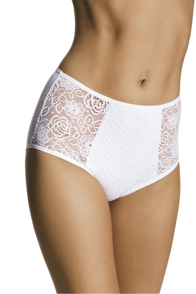 Figi Adila ● o wysokim kroju ● zabudowane na biodrach ● przód majtek z ażurowej koronki o kwiatowym motywie ● tył gładki ● wykonane z najwyższej jakości materiałów ● pakowane w pudełko