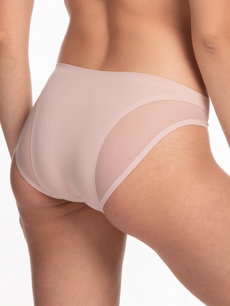 Majtki cięte laserowo w kolorze pudrowego różu wykonane z wysokiej jakości mikrofibry. Dzięki zastosowaniu najnowocześniejszych technologii, majtki posiadają gładkie wykończenie, które zapewni maksymalną swobodę ruchów i niezwykły komfort podczas noszenia. Ich pudrowy kolor różu nadaje im elegancki i stylowy wygląd, który z pewnością przypadnie Ci do gustu. Przód majtek został wyposażony w siateczkę, która nie tylko dodaje im uroku, ale również pozwala skórze oddychać. Tył jest zabudowany, co zapewnia pełną dyskrecję oraz poczucie bezpieczeństwa. Opakowanie zawiera jedną sztukę.