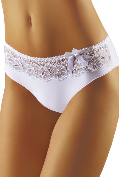 Wygodne figi dla każdej Pani. Wykonane z miękkiej i przyjemniej dla skóry mikrofibry. Przód ozdobiony koronką o motywie kwiatowym oraz delikatną kokardą. Figi pakowane w pudełko.