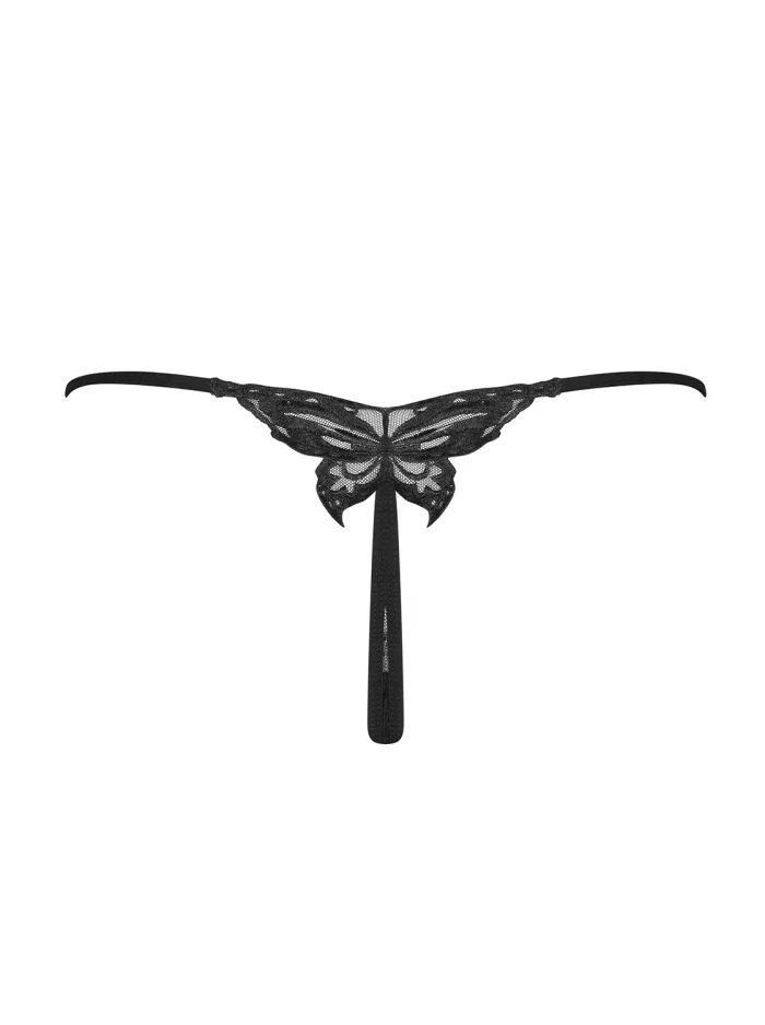 Przepiękne, czarne stringi. Aplikacja z motywem motylka – świetnie zwraca uwagę na pośladki. Zalotnie prześwitujący materiał – zadziorny efekt. Kwiatowy wzór zdobi tkaninę. Elastyczny materiał.